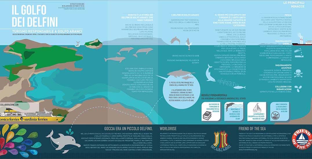Uno dei primi progetti di Worldrise, Il Golfo dei delfini, è nato in Sardegna, a Golfo Aranci, dove fanno scalo le nostre navi: qui le acque sono popolate da magnifici tursiopi. L’impegno di Worldrise Onlus : Il Golfo dei Delfini ha anche l’obiettivo di proteggere e di trasformare il dolphin watching in un’attività sostenibile, che diventi un esempio di offerta ecoturistica, divulgativa e di sviluppo sociale. La Compagnia collabora con i team di Worldrise Onlus dal 2016, supportandoli nelle attività di divulgazione e di ricerca, per promuovere la conoscenza e il rispetto del mare e dei suoi abitanti.